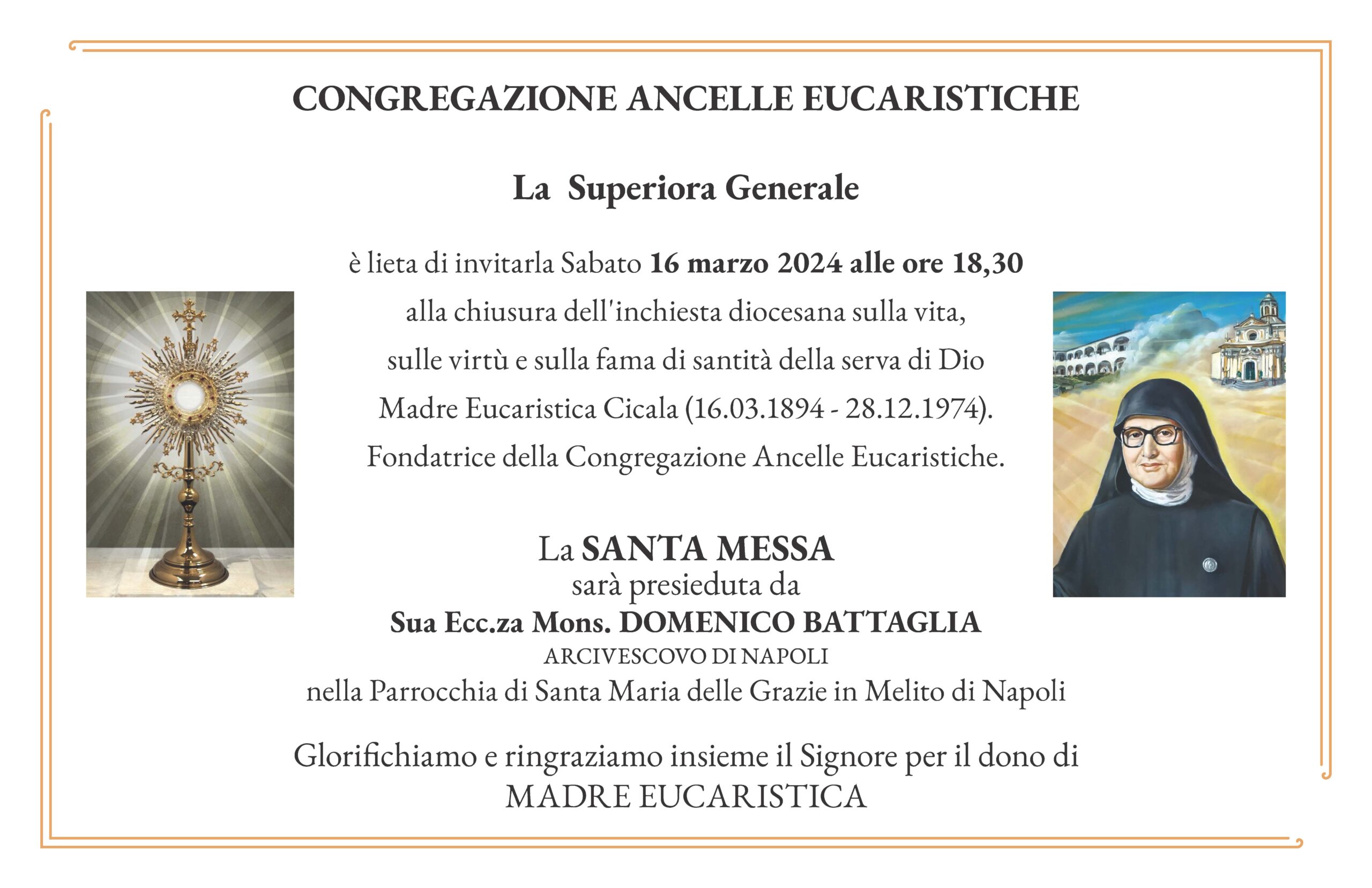 16 Marzo ore 18.30 – Celebrazione Eucaristica